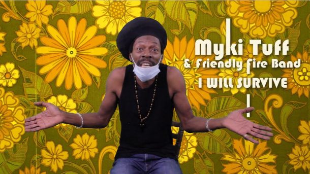 One of the highlights of the Friendly Fire Band’s stripped down acoustic shows at the Dark Horse and then online, was Myki Tuff’s humorous rendition of Gloria Gaynor’s I Will Survive .
