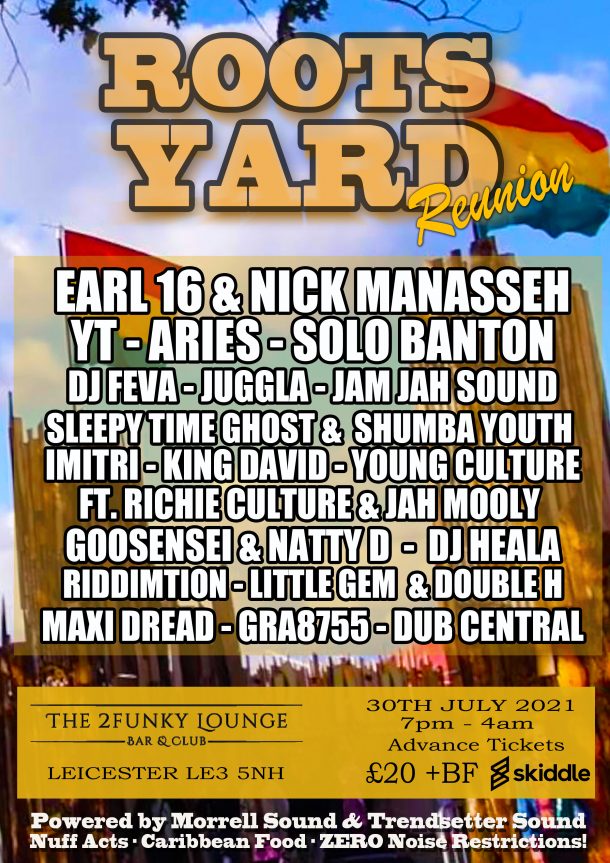 Jam Jah Sound is happy to announce that we will be taking part in the Roots Yard Reunion on the 30th July in Leicester alongside our Roots Yard famalam!